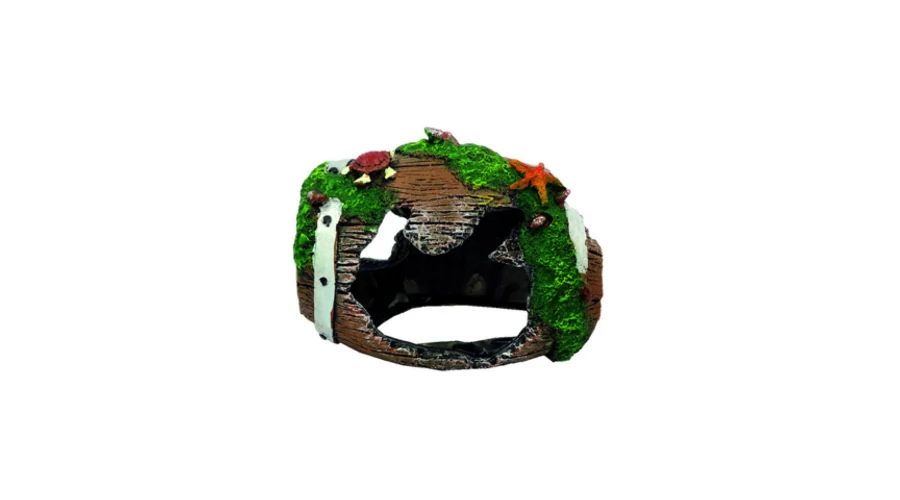 Tatrapet akvárium dekoráció - hordó tengeri motívumokkal 12x9x10cm